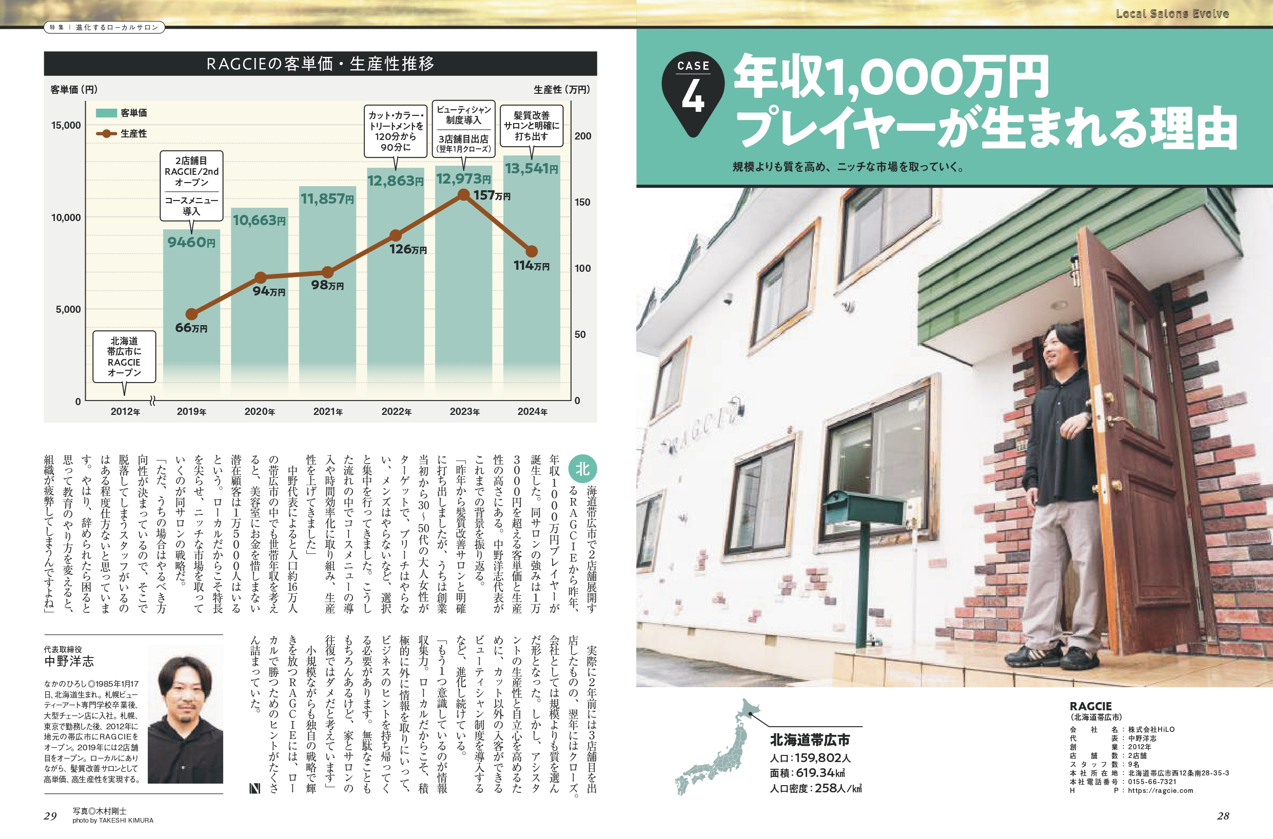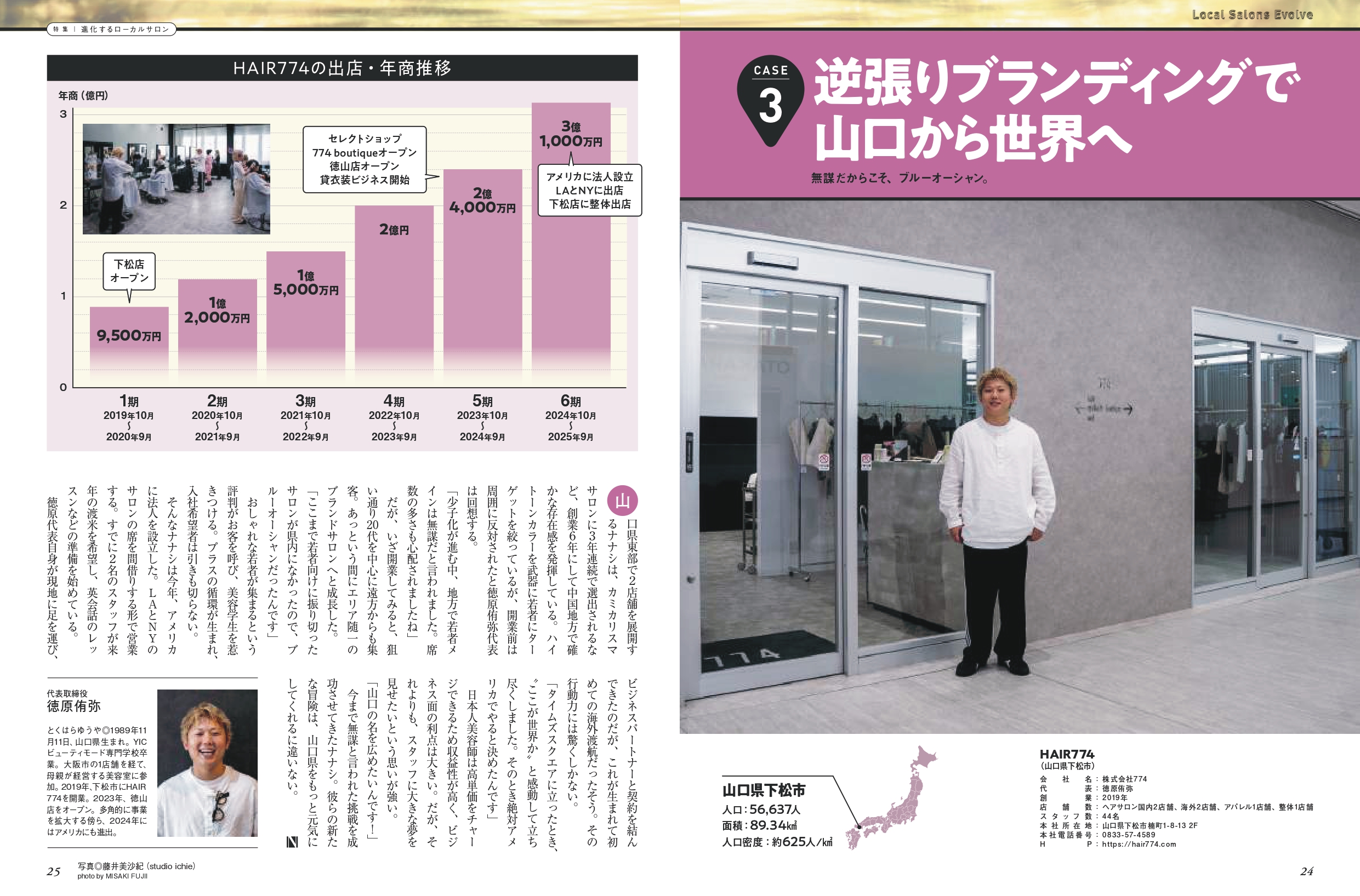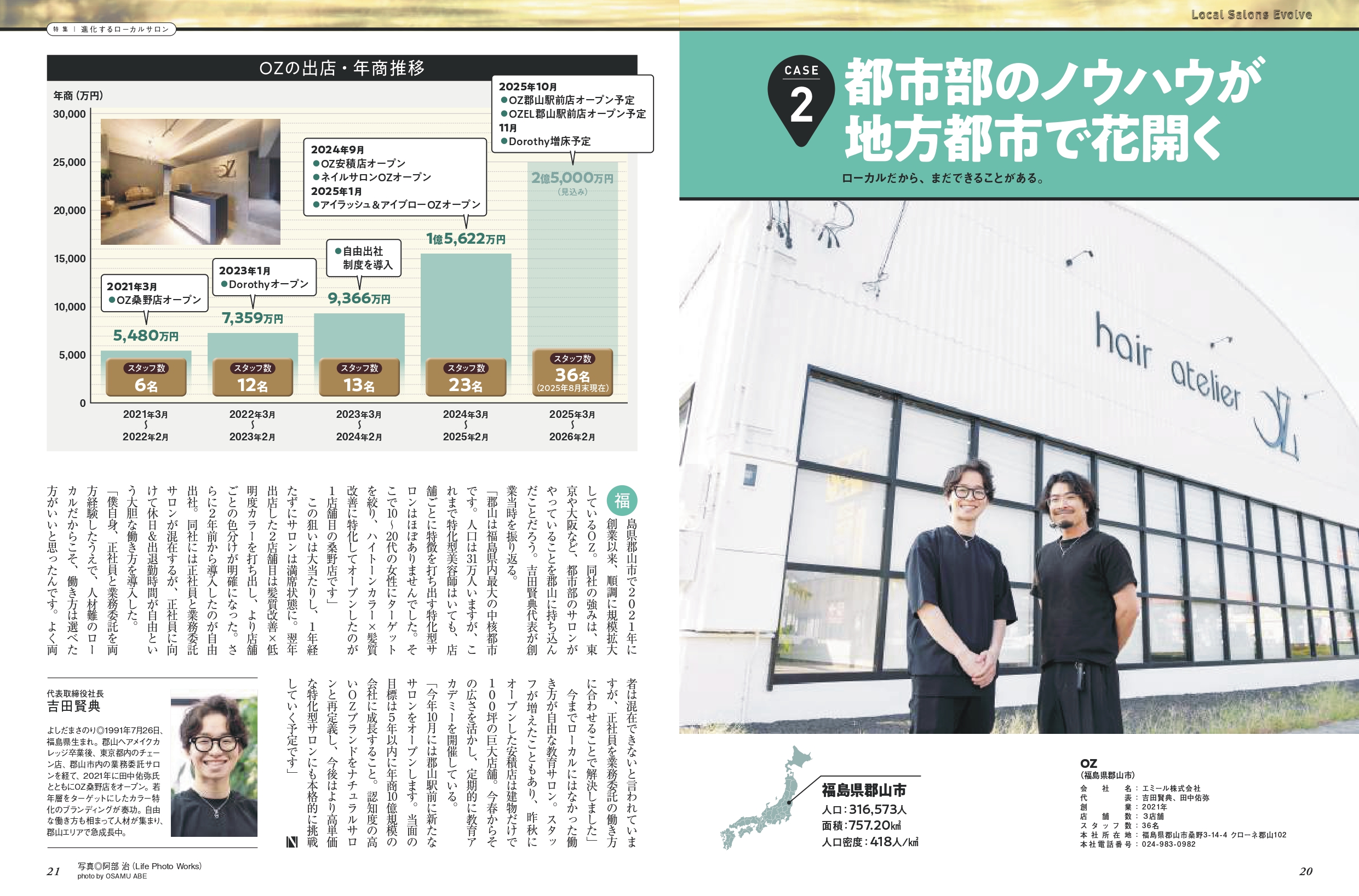 少子高齢化による深刻な求人難や新規集客といった課題はあるものの、地域内のブランド力を高めていけば、高リピートを軸とした安定経営が行えるというのがこれまでのローカルサロンの強みだった。しかし、最近ではこうした常識に捉われず、特化型サロンの出店や薬 軟な働き方など、都市型サロン並みの特徴を打ち出すサロンが増えている。ローカルサロンはどこまで進化するのか?全国各地の成長サロンを取材する。